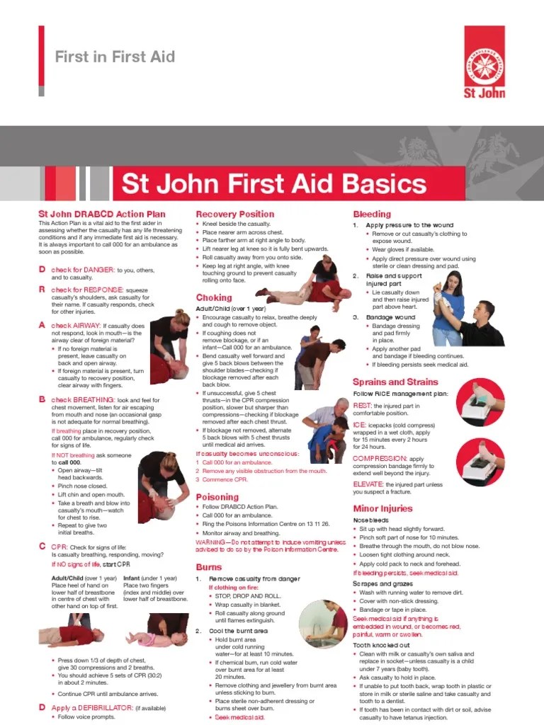 If the person is unresponsive, tilt the head. Web provide care and call 911/poison control reassurance check check the airway: Our printable, guide for performing first aid can help you correctly administer care during a crisis. Web learn the right first aid steps.